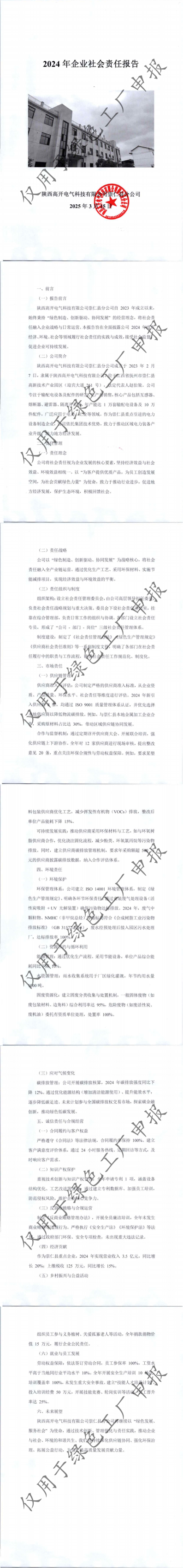 陜西高開電氣科技有限公司崇仁縣分公司2024年社會責(zé)任報告