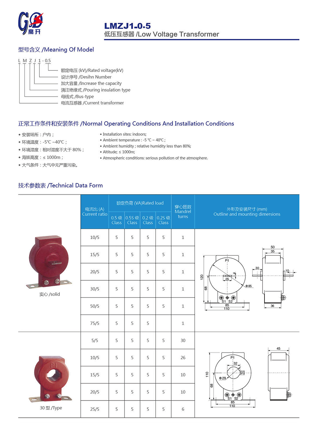 LMZJ1-0.5低壓互感器