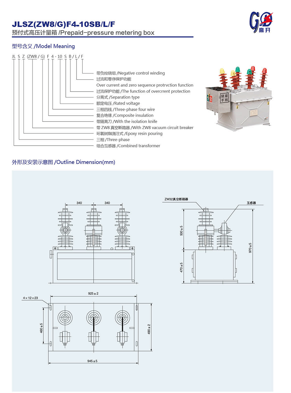 JLSZ(ZW8/G)F4-10SB/L/F預(yù)付式高壓計量箱
