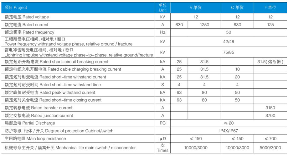 GKXGN □ -12(CVF) 固體絕緣環(huán)網(wǎng)柜開關(guān)設(shè)備是本公司自行研發(fā)的新一代環(huán)保型固體絕緣環(huán)網(wǎng)柜。主要由三種功能單元組成,即 V 單元 ( 斷路器單元 ),C單元 (負(fù)荷開關(guān)),F(xiàn)單元 (組合電器單元),每個單元可以單獨(dú)使用也可以自由擴(kuò)展,其結(jié)構(gòu)分為智能控制儀表室、操作機(jī)構(gòu)和一次部分,儀表室可配微機(jī)保護(hù) (控制器 ),機(jī)構(gòu)為專用彈操機(jī)構(gòu),一次部分采用 APG 自動凝膠工藝,將隔離開關(guān)和滅弧室完全封在環(huán)氧樹脂中,并有專用接頭和母線相邊。滅弧室的設(shè)計開關(guān)選用滅弧室采用專用的銅鉻觸頭材料,R 型縱磁場觸頭,以及完全一次封排工藝,該滅弧室開斷短路電流能力、穩(wěn)定性、電壽命、溫升以及絕緣水平都較之前的滅弧室 ( 銅鋁觸頭材料,杯狀縱磁場觸頭結(jié)構(gòu),以及不完全一次封排工藝 ) 有了明顯提高。操動機(jī)構(gòu)采用與開關(guān)配合一體的彈操機(jī)構(gòu),即隔離開關(guān)和主開關(guān)彈操機(jī)構(gòu)為一整體,可方便實(shí)現(xiàn)互鎖,而且機(jī)構(gòu)零件少,減少了不必要的傳動環(huán)節(jié),可靠性高,并可根據(jù)用戶需要加裝電動操作。