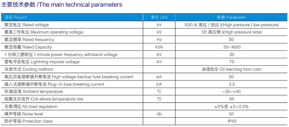 ◆ 采用油浸式 S9 或性能更優(yōu)的 S11系列變壓器。