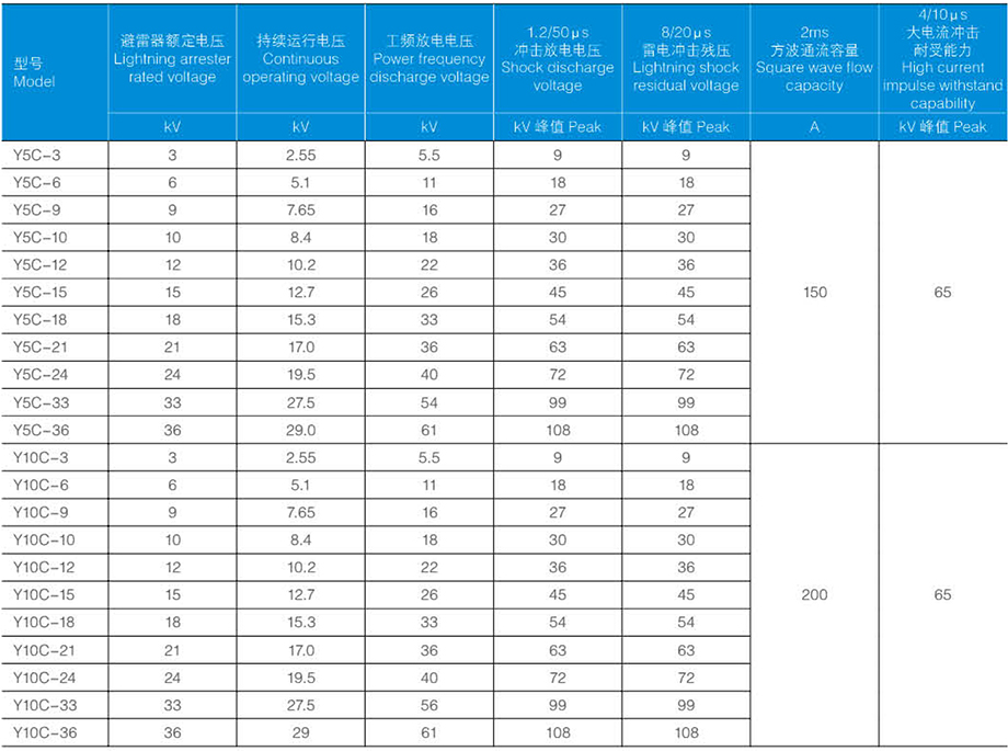 陶瓷外套無間隙金屬氧化物避雷器標(biāo)稱電流 5/10kA