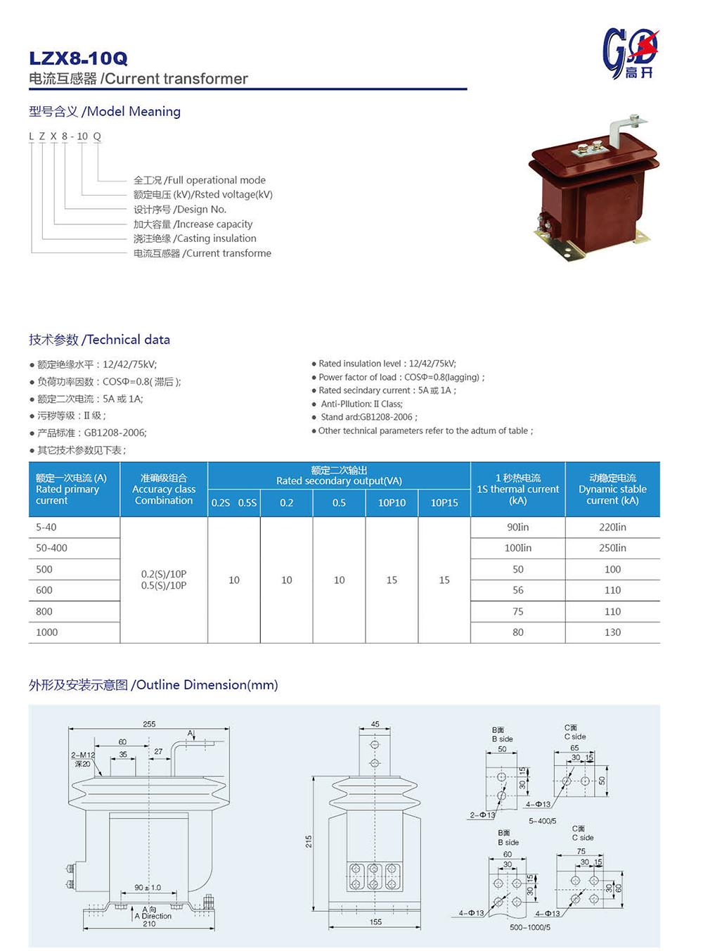 LDJ-10(Q)/210-L、Y電流互感器